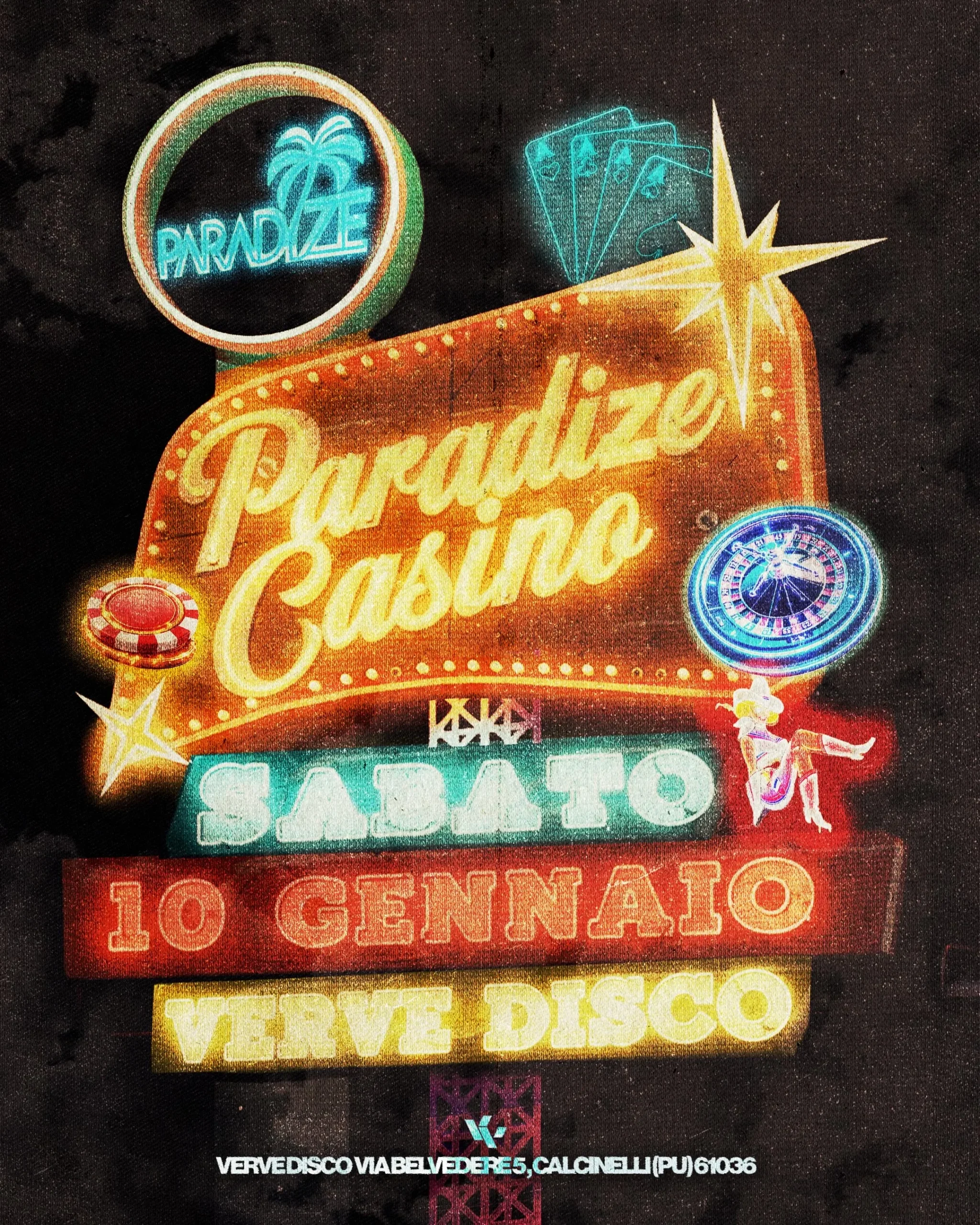 Paradize torna al Verve Disco il 10 gennaio 2026 con un nuovo evento! Il PARADIZE CASINO’ EDITION sta per arrivare. Vieni a vivere un sacco di novità! In un locale riallestito e giochi con premi!